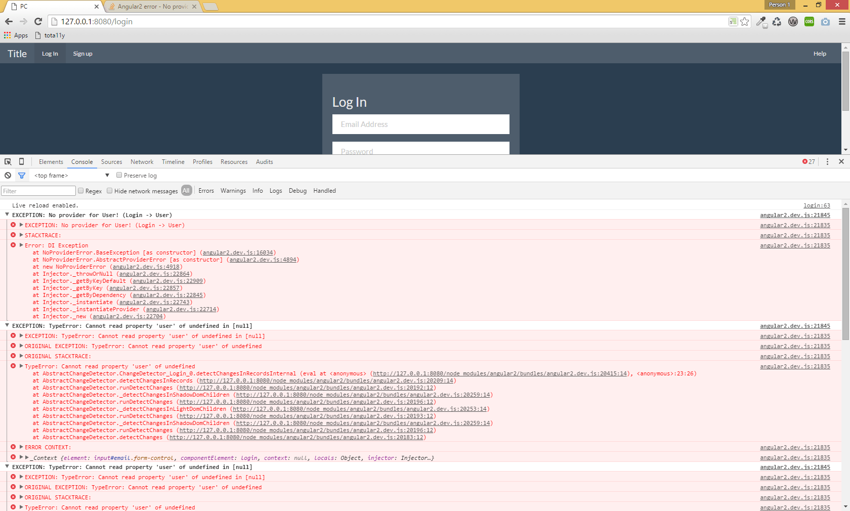 javascript Angular2 error No provider error for my login component from stackoverflow.com